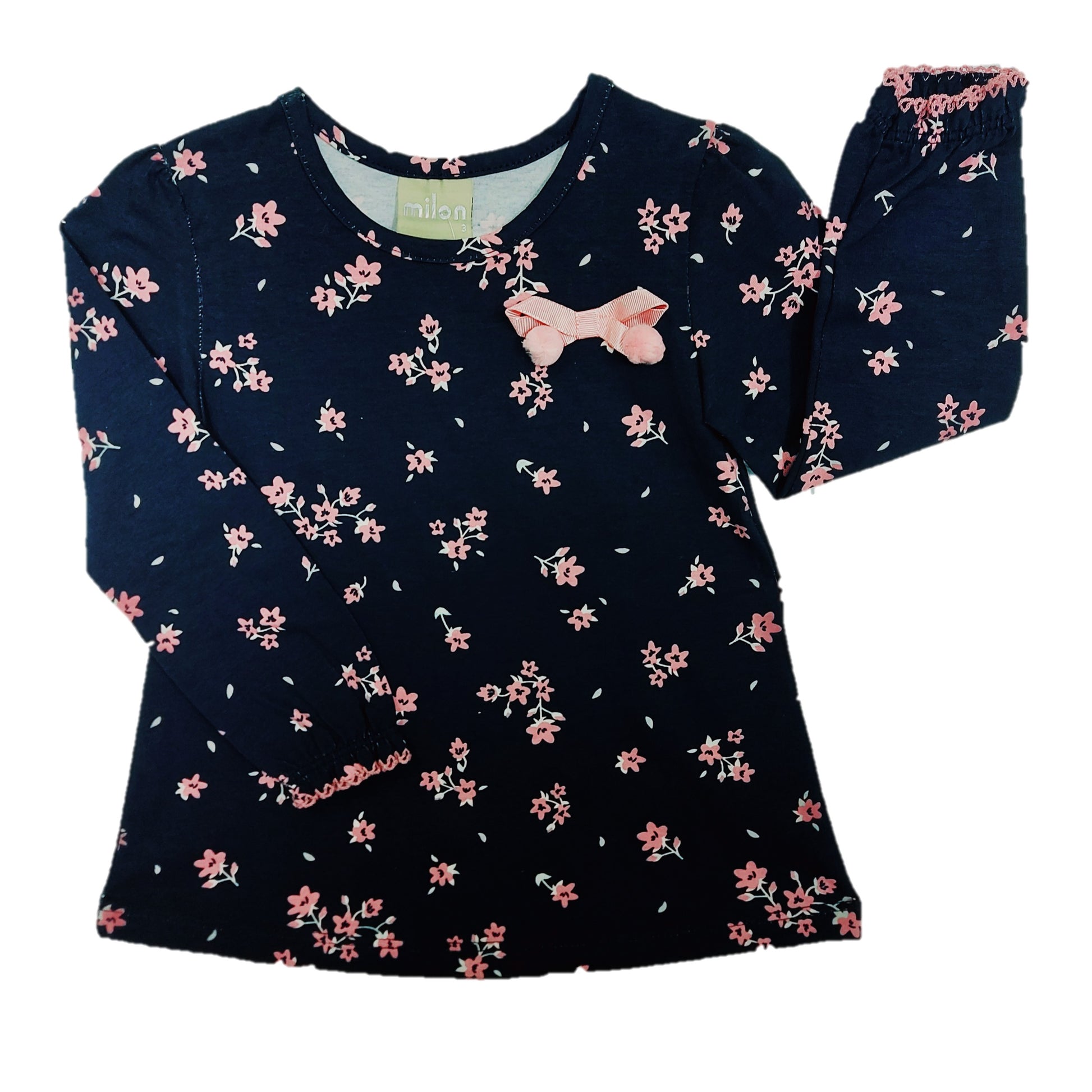 - Camiseta para niña manga larga estampada, color azul oscuro